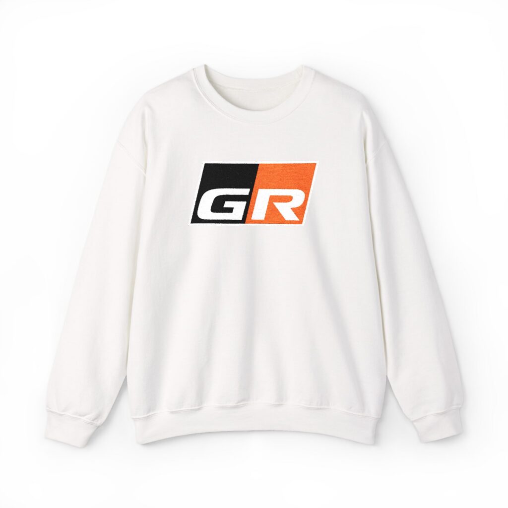A soft, midweight crewneck that feels lived-in from the first wear. Clean white knit frames a bold, slightly distressed red-and-black patch logo at the chest — subtle motorsport energy without shouting for attention. The tubular construction and ribbed collar keep the silhouette smooth and comfortable, while double-needle stitching and a tear-away label mean this sweatshirt wears well and stays easy to care for. Slide it on for early morning drives, pit-stop chats, or slow weekends when you want something casual that still shows your taste.