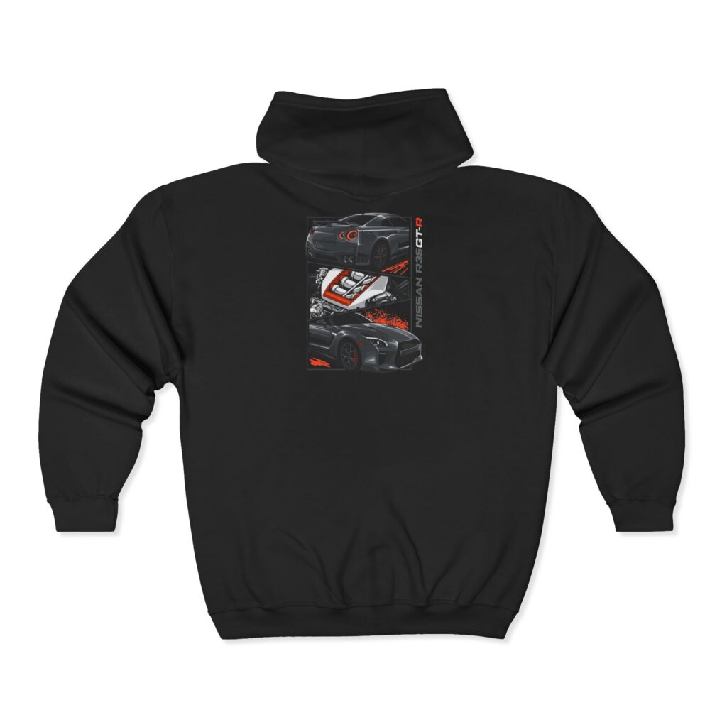 This zip-up hoodie carries the rush of late-night street runs and garage nights into something you can throw on any day. The front chest shows a compact logo while the back features layered car imagery and gritty, mechanic-style typography — it feels lived-in, like your favorite crew jacket after a season of track days. The medium-heavy cotton blend keeps the silhouette structured but warm. Pockets hold phone and keys while the adjustable hood tames wind on the way to the meet. Subtle embroidery and durable metal hardware add a tactile, automotive edge that ages well.