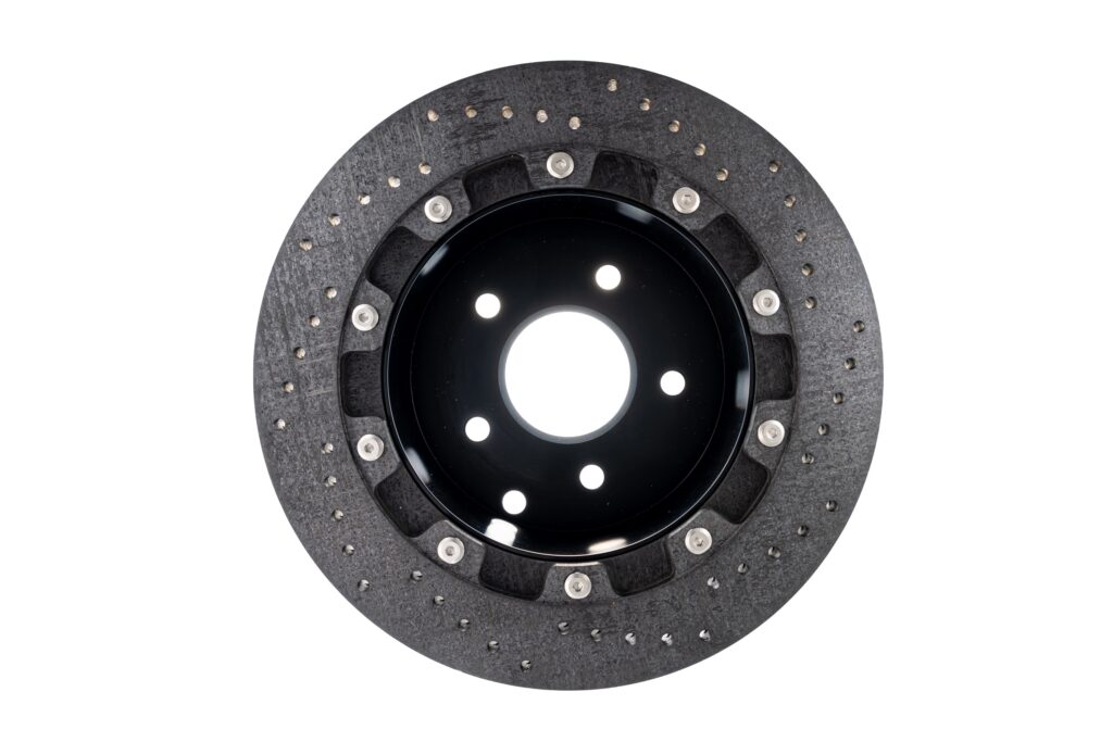 This CCM (Carbon Ceramic) Kit reduces weight 38.2% over the factory iron rotors!