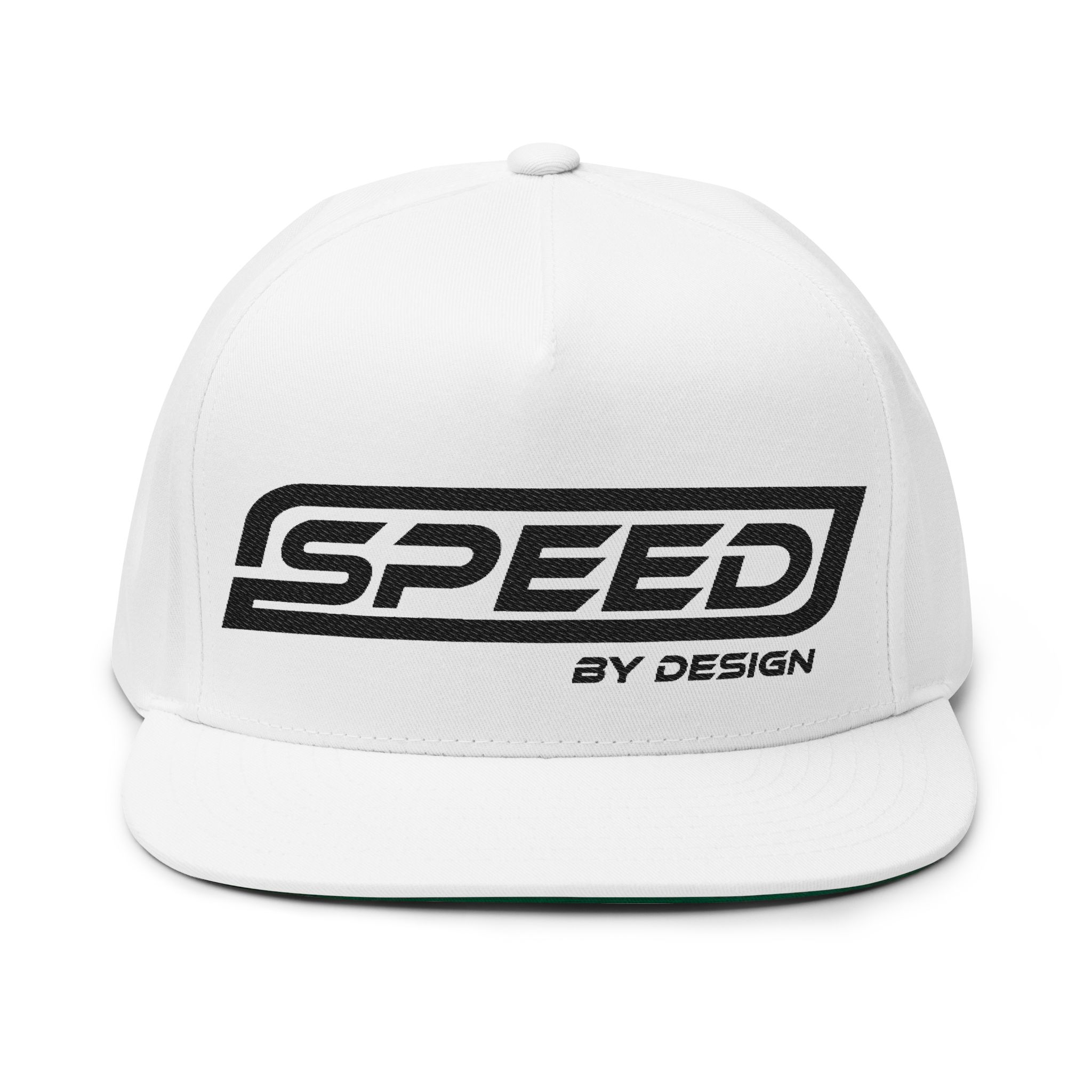 A clean, vintage-inspired flat bill cap that channels racing heritage with modern streetwear attitude. The structured five-panel crown holds embroidered lettering with bold contrast, while the green undervisor and matching sewn eyelets add subtle, purposeful details. Lightweight 100% cotton twill wears in over time for a lived-in look, and the snapback closure lets you dial in the fit. Worn at the track, on weekend drives, or while tuning the garage playlist, this cap feels like part of the crew — confident, focused, and quietly crafted.